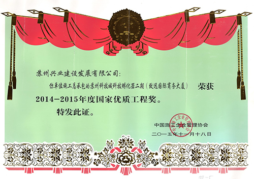 公司获得7项鲁班奖、6项国家优质工程、10项AAA级安全文明标准化诚信工地以及国家级新技术应用示范工程、全国建筑业绿色施工示范工程、中国安装之星、中国钢结构金奖等诸多国家级奖项,集团主编/参编各类规范、标准、规程5项;国家发明、实用新型、外观设计专利56项;国家级工法5项。荣获全国五一劳动奖状、全国建筑业先进企业、中国建筑业企业竞争力百强企业、全国建筑业AAA级信用企业、全国“守信用重合同”企业、全国建筑业质量管理优秀企业、全国质量效益型先进企业、全国“安康杯”优胜企业、全国模范职工之家、全国工人先锋号等多项全国性荣誉;被江苏省人民政府评为江苏省先进建筑业企业、江苏省建筑业优秀企业;荣获江苏省科技进步三等奖、江苏省建筑业科技成果二等奖;江苏省建设科技先进集体、江苏省建筑业最佳企业、江苏省建筑业综合实力50强、江苏省文明单位等多项荣誉称号。集团公司董事长、党委书记、总经理韩伟被评为江苏省建设系统劳动模范。